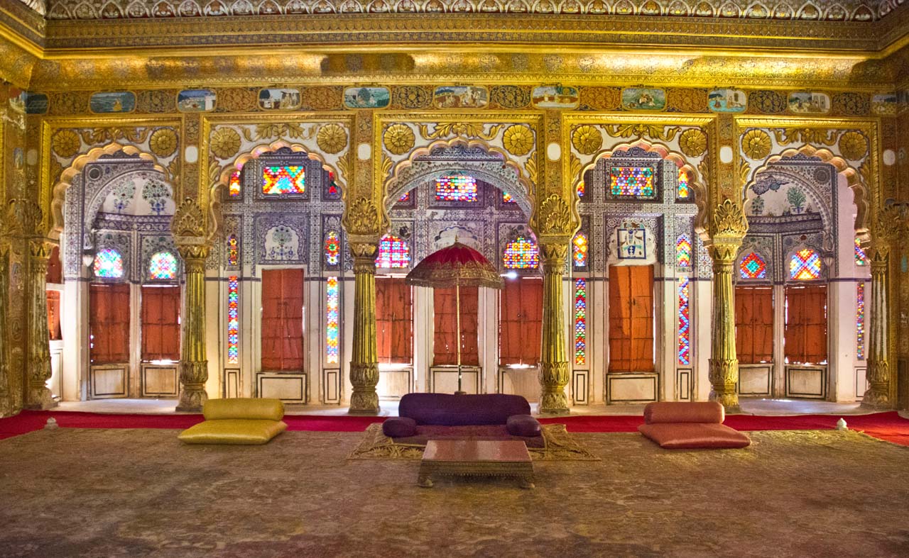 Maharaja Abhaya Singh built the Phool Mahal. It is one of the grandest Mehrangarh Fort period rooms. It is believed that the Phool Mahal was a private and exclusive chamber of pleasure. Dancing girls are believed to perform here for the pleasure of the Maharajas. The gold for the Mahal came from Ahmedabad in Gujarat.