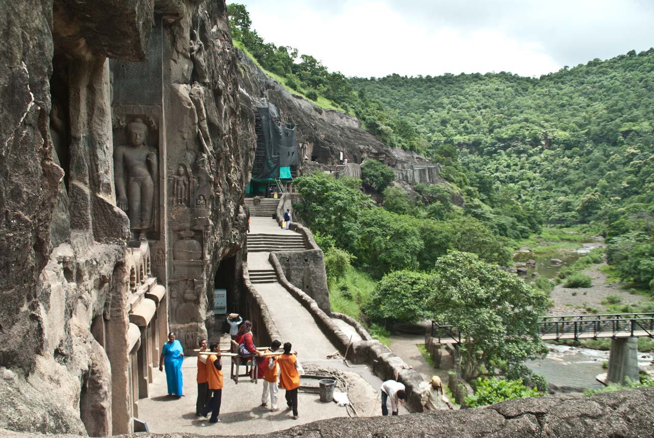 Ajanta caves are 90 km from Aurangabad and have good bus connectivity. Or Taxi’s one can hire a taxi for the full day.