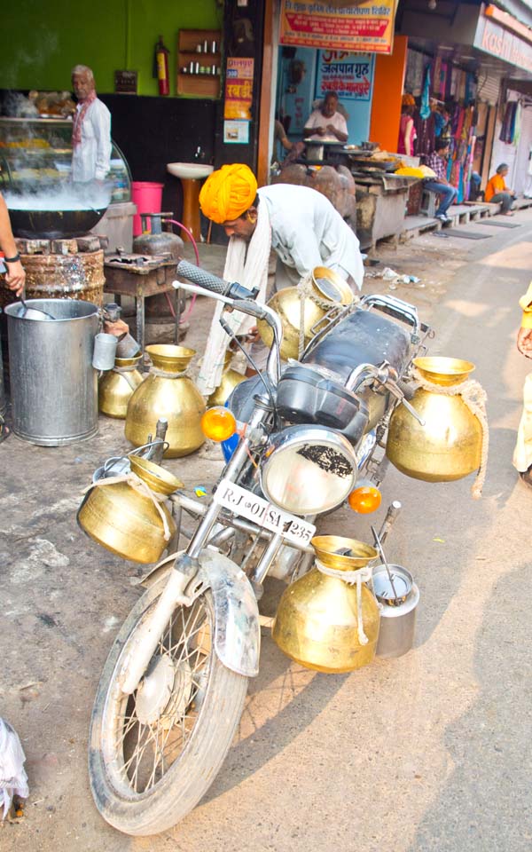 After the show, we went to popular snacks shop near the palace and had some local snacks. A guy was making fresh things and there were lots of local people waiting for their turn. After having some spinach pakoda with kadi (yogurt based gravy), we had a glass full of sweet lassi from next-door shop. Both the things were tasty as well as fresh with very mild spices.