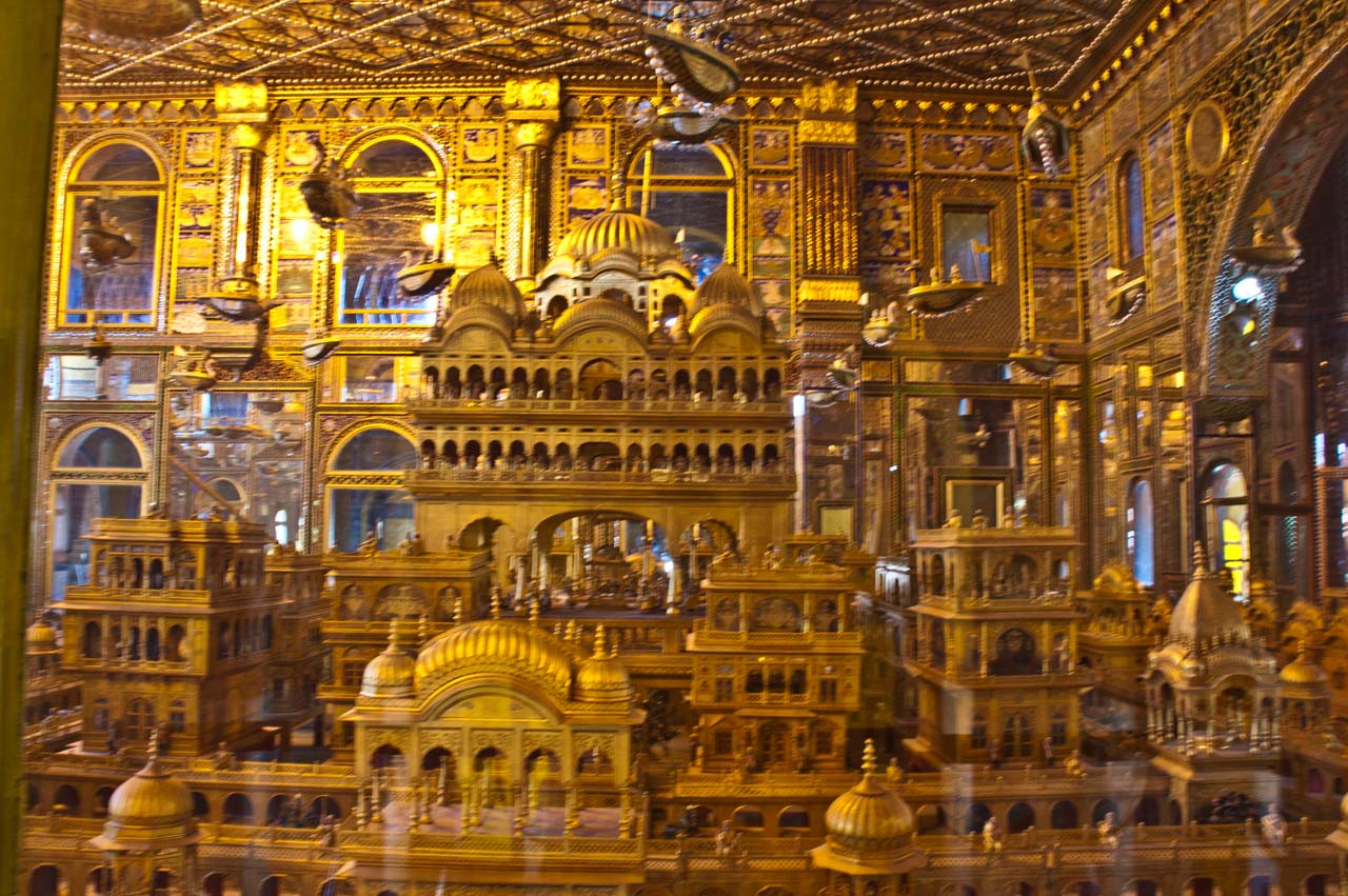 The temple is divided into two parts i.e. one is a place for worship and other is a museum. The museum is spread over two stories in dimensions of 40 x 80 feet and is the main attraction for tourists like us. The replica of “Ayodhya” and “Mount Sumeru” are covered with gold leaf and were made according to the descriptions contained in Holy Scripture Adi Purana. This golden chamber of the temple uses 1000 kg of gold to carve out depiction.