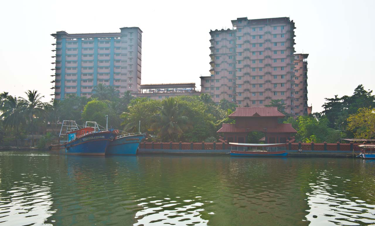 Soon after we approached Amritapuri, the headquarters of is Mata Amritanadamayi Mutt. The high twin towers next to backwater are known as Amrithapuri. This is the Ashram of the spiritual leader Mata Amritanandamayi. Some foreign tourist got down here as they were staying the Ashram for next one week. Most of the foreigners use the Kollam boat service because it is closer to the Amritapuri Ashram but some of them came all the way from Alleppey in our boat.