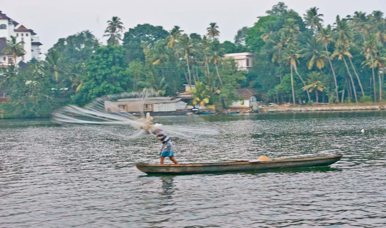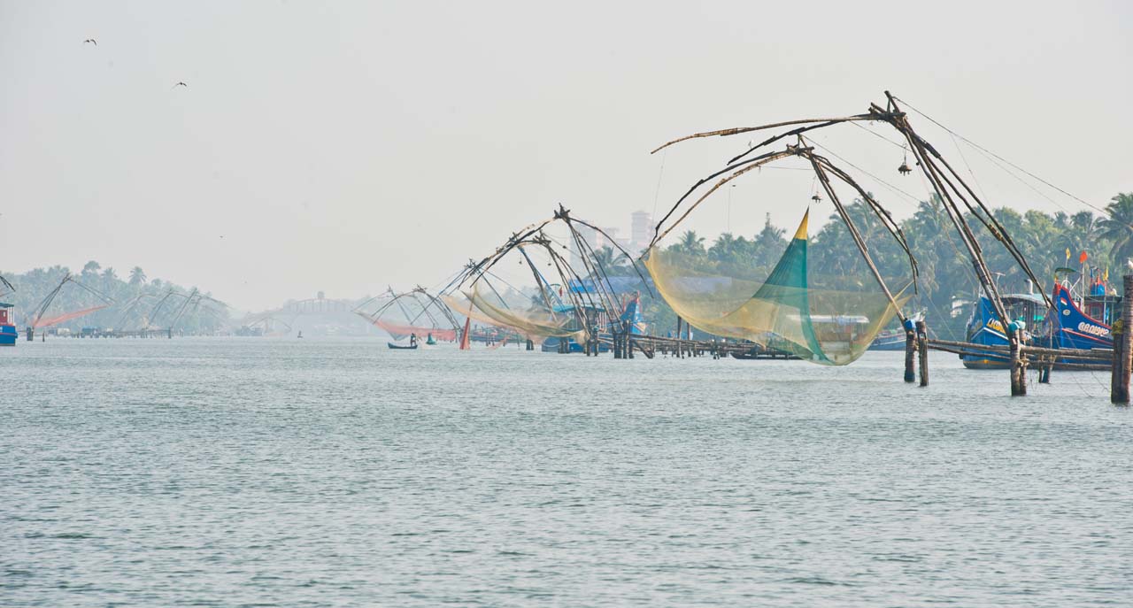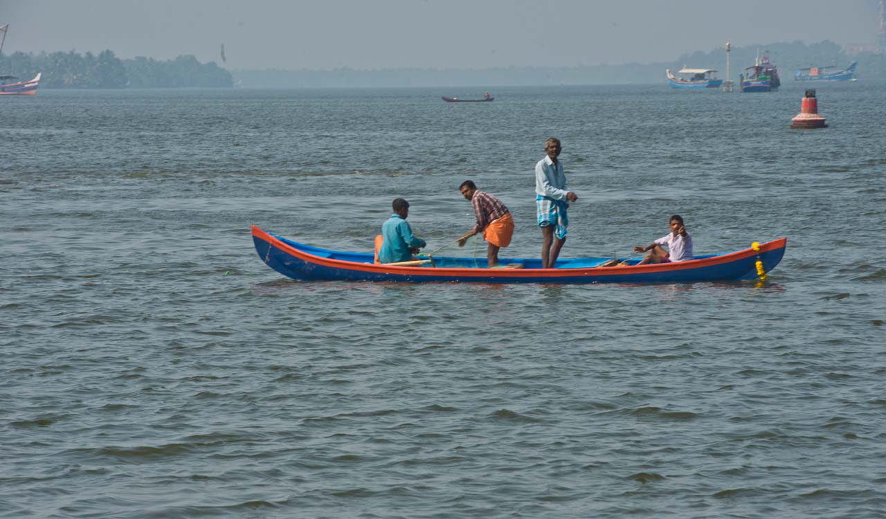 Here I saw the fishermen in boats, a houseboat which is regarded as one of the best for Ayurveda treatment, and rows of many Chinese fishing nets are erected in the water. These Chinese fishing nets on both sides of the boat’s track looked interesting.