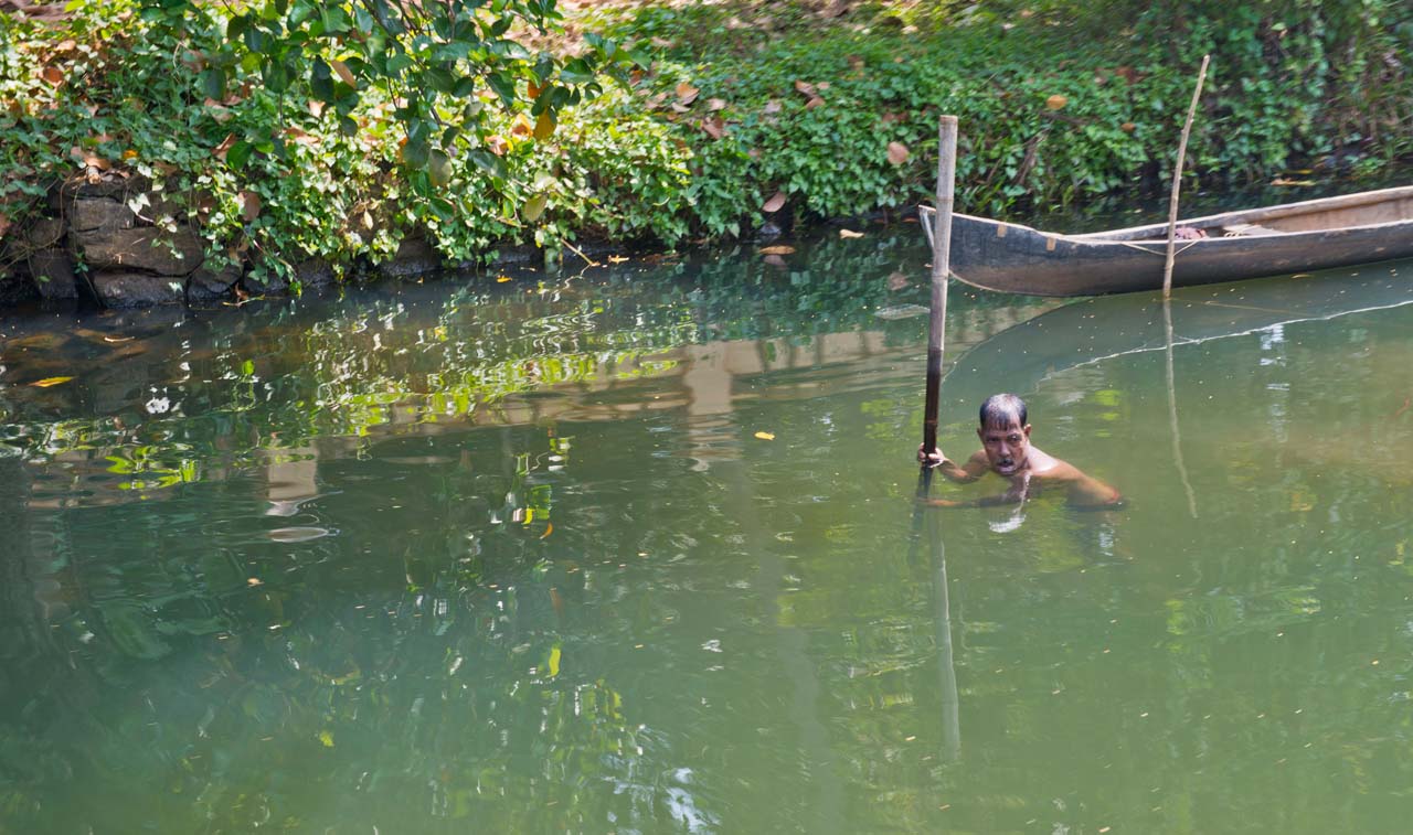 I saw some small churches, tree houses and a man catching fish (I was told Meen Moily) with hand.
