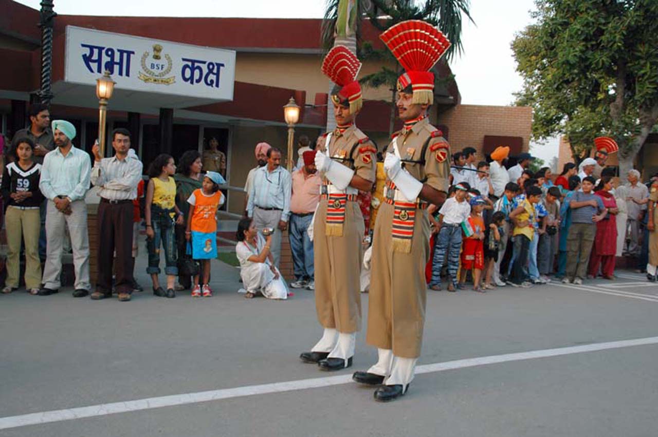 I noticed that most of the people were running so that they can get a seat with the best view of the ceremony. BSF had made a small stadium on both sides of gate and road, where the pre-flag lowering ceremony takes place. We didn’t run but still, we managed to get good seats.