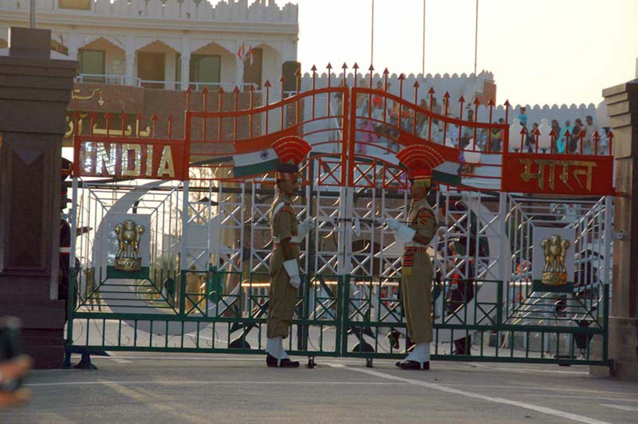 The flag lowering ceremony at Wagah border is one of the must visit when in Amritsar. After visiting Golden temple and Jaliawala bagh we had a sumptuous lunch of Punjabi food from dhaba. Attari is the last village in Amritsar 3 km before Wagah border. The International border of India Pakistan is 32 km from Amritsar city. Attari is the last village on India side and Wagah is the first village on Pakistan side. This border check post is located on Grand Trunk Road, which is Asia’s oldest and longest major roads run from Chittagong, Bangladesh to Kabul, Afghanistan.