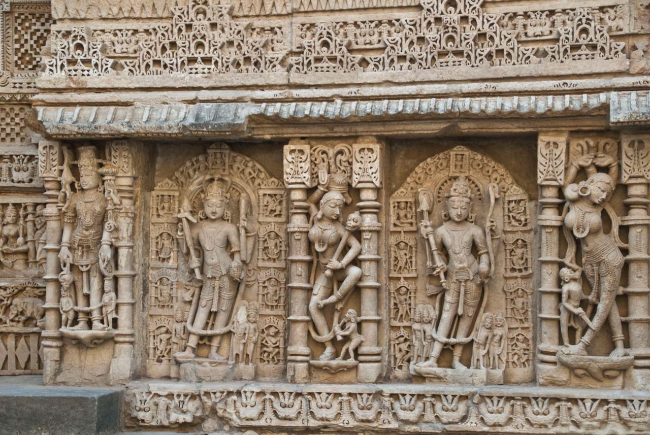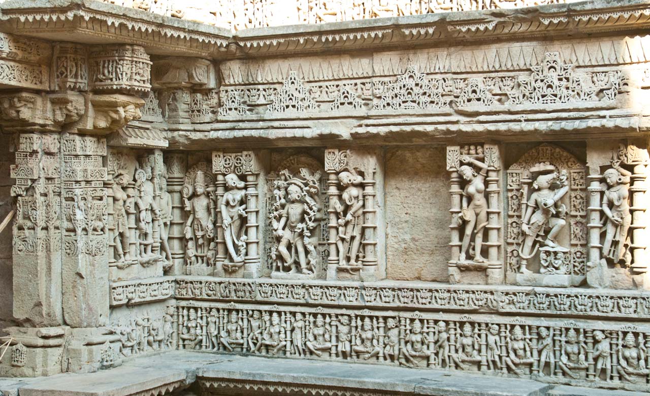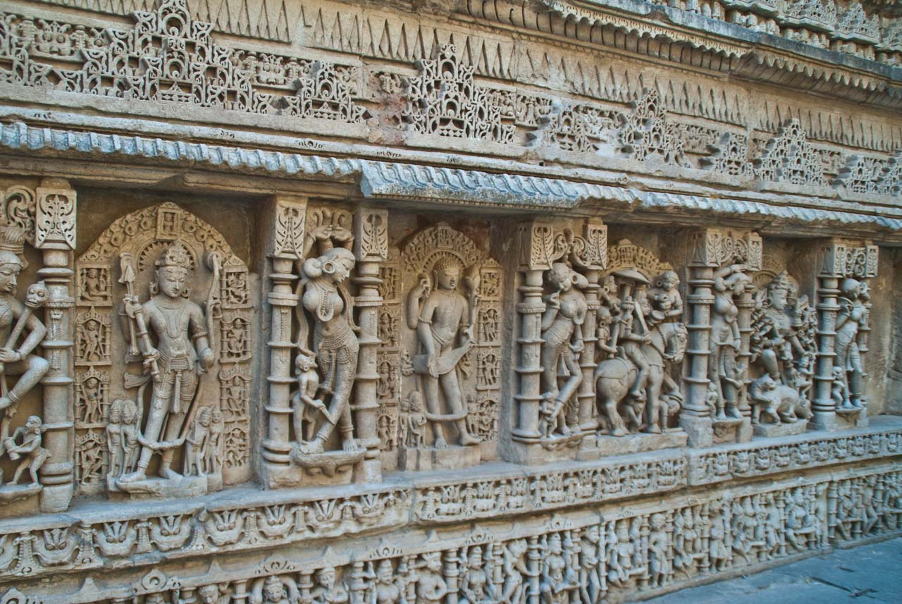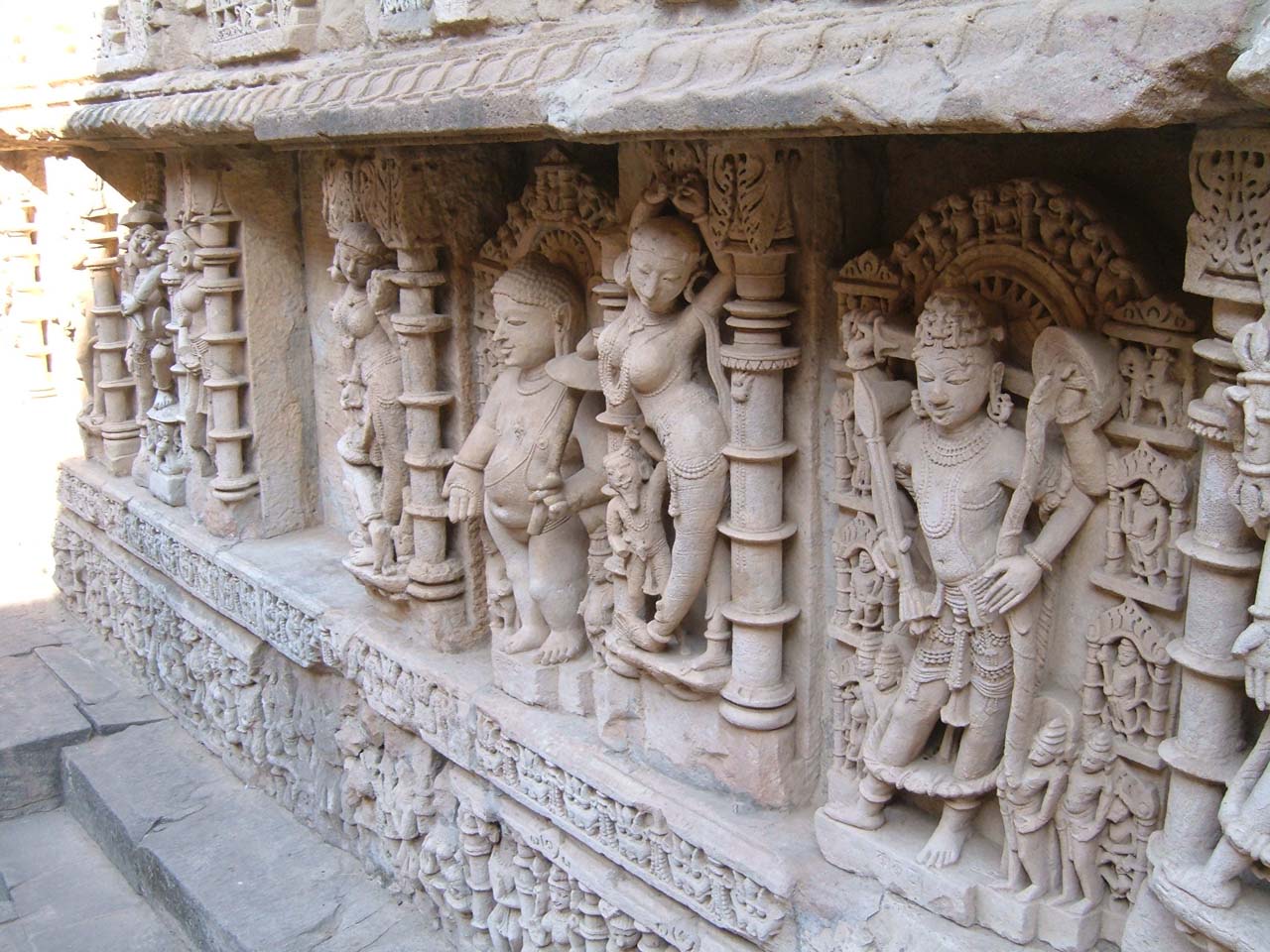 The side of stepwell has sculptural of high artistic and aesthetic quality on both sides. There are around five hundred main sculptures and approximately a thousand minor ones of religious and mythological importance.