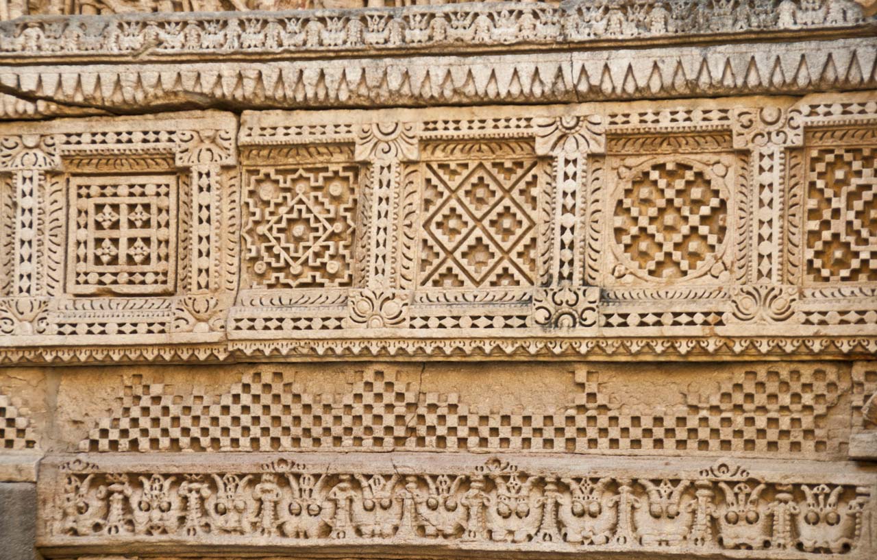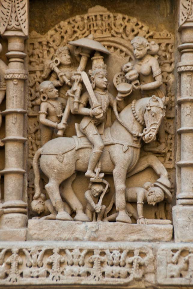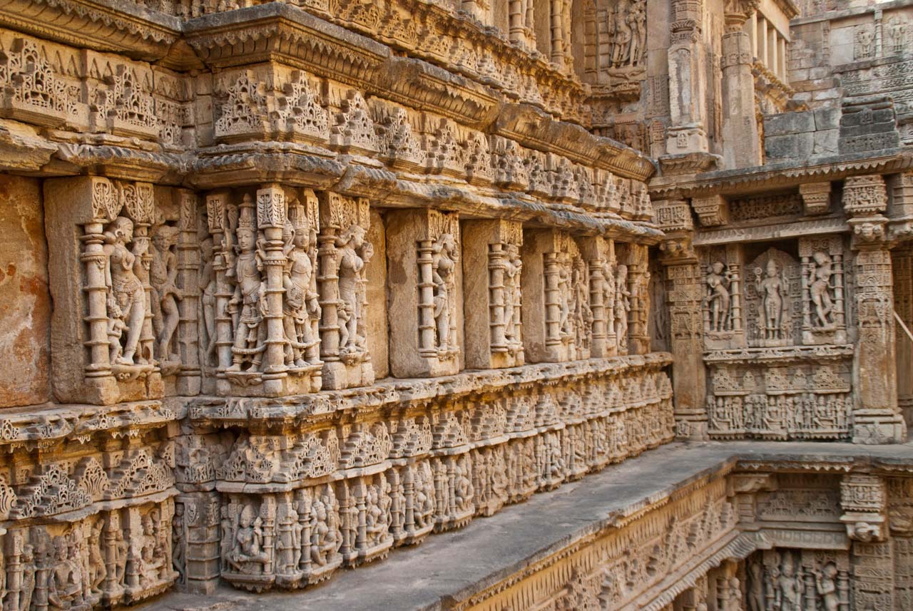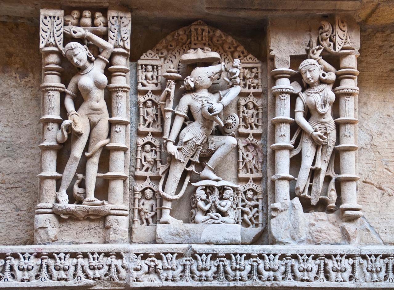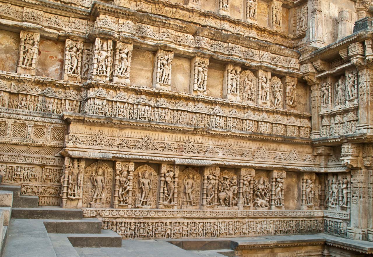 The side of stepwell has sculptural of high artistic and aesthetic quality on both sides. There are around five hundred main sculptures and approximately a thousand minor ones of religious and mythological importance.