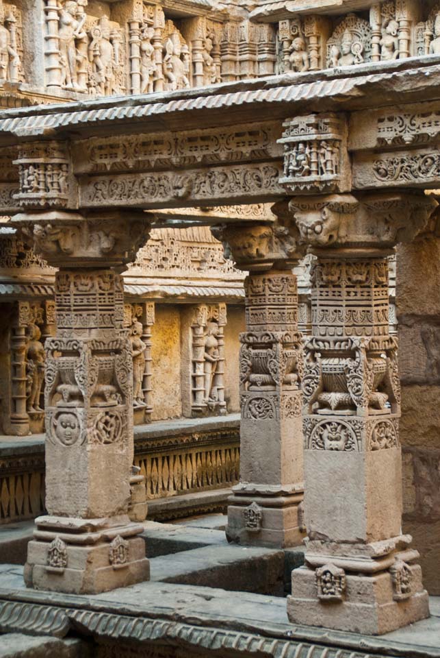 The stepped corridor has pillared multistory pavilions at regular intervals. This is the deepest existing Vav in Gujarat. The depth of Vav helped in procuring the water in summer months when the water level drops.
