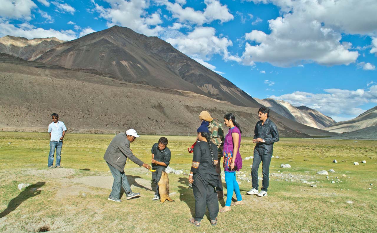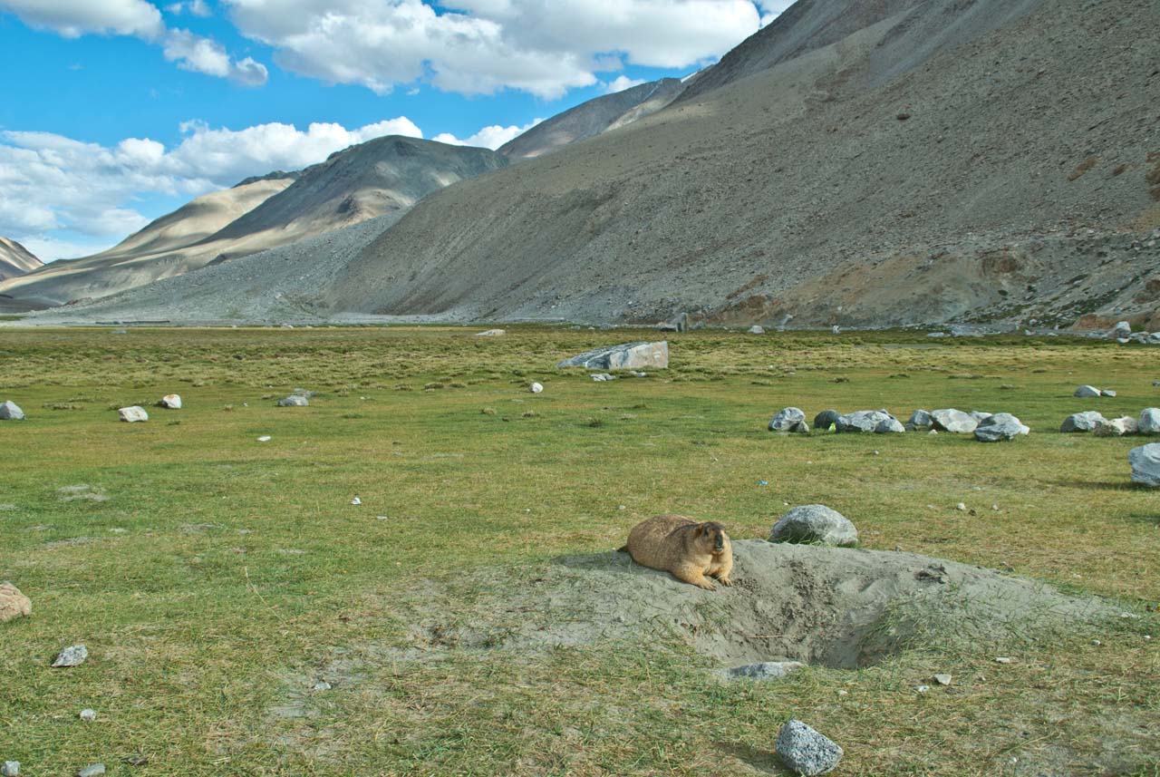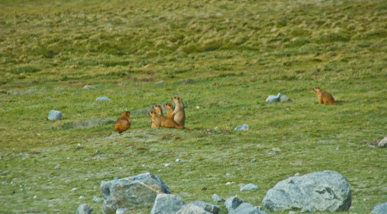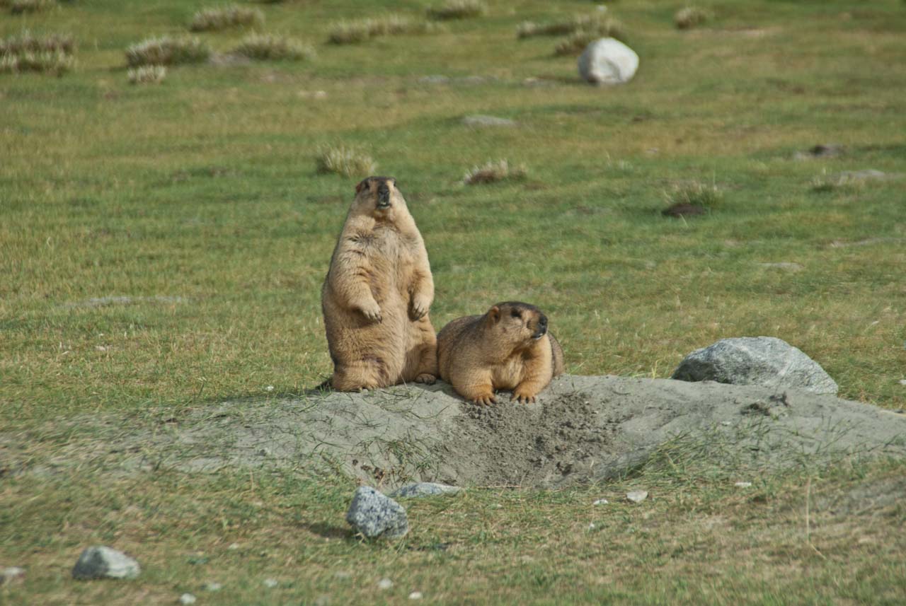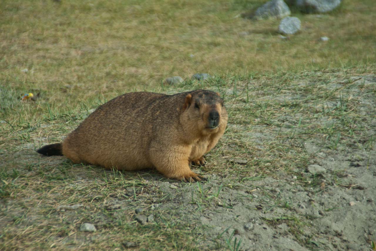 We came to know that this is the area, where we can see marmots moving in the open. I got down from the car and we moved somewhat on the ground. Here we spotted few marmots sitting outside a hole but as other people also came forward and some of them made noise the smaller ones went inside the hole but there were some marmots who were accustomed to human beings. Some of the people offered fruits to them ignoring the advice of our & their drivers…. Just for the photo op 🙁