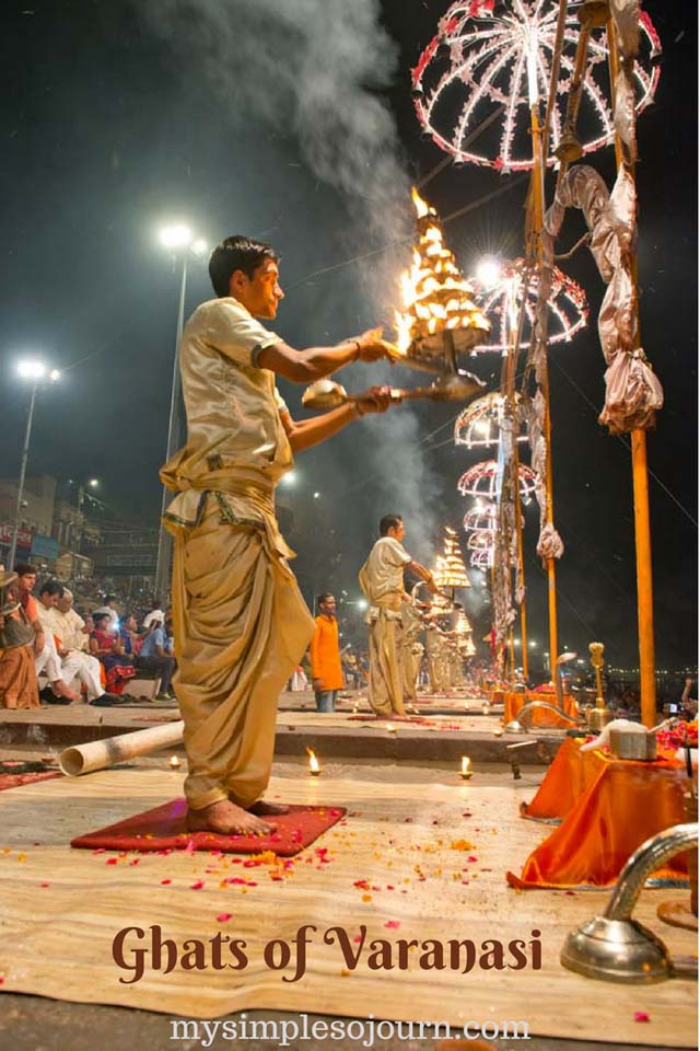 This elaborate ceremonious aarti like many other Hindu “poojas” is also dedicated to Prithvi (Land), Jal (Water) and Aakash (Whole universe). The aarti is the most viewed activity in Varanasi. People come much before the aarti starts and sit on Ghat.