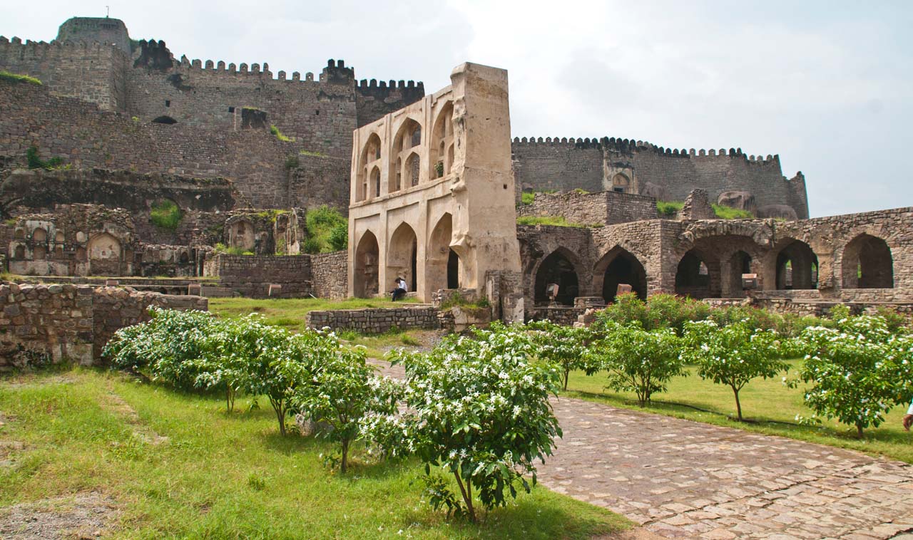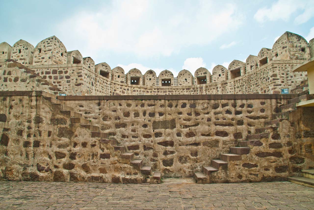 Golconda fort is built on a granite hill at a height of 120 meters and huge crenelated ramparts surround the main structure. The fort complex and its surrounding are spreads across 11 km of area. It is an architectural beauty and there are many pavilions, gates, entrances and domes in the fort compound.