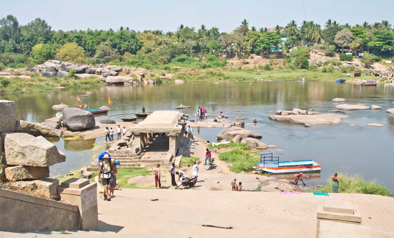 Later on, we went to the Tungabhadra river, which is only 5 minutes walking distance from our guesthouse. It was fun watching life around the river.