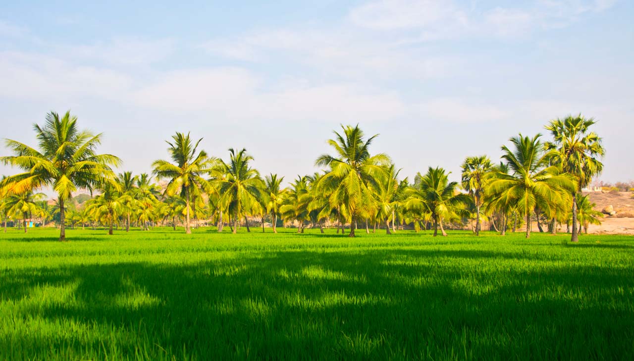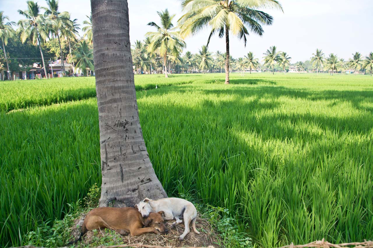 From the riverbank, we had to climb and reached a small bazaar on Hippie Island. The scene on this side of the river was somewhat different, there were lush green paddy fields with coconut trees.
