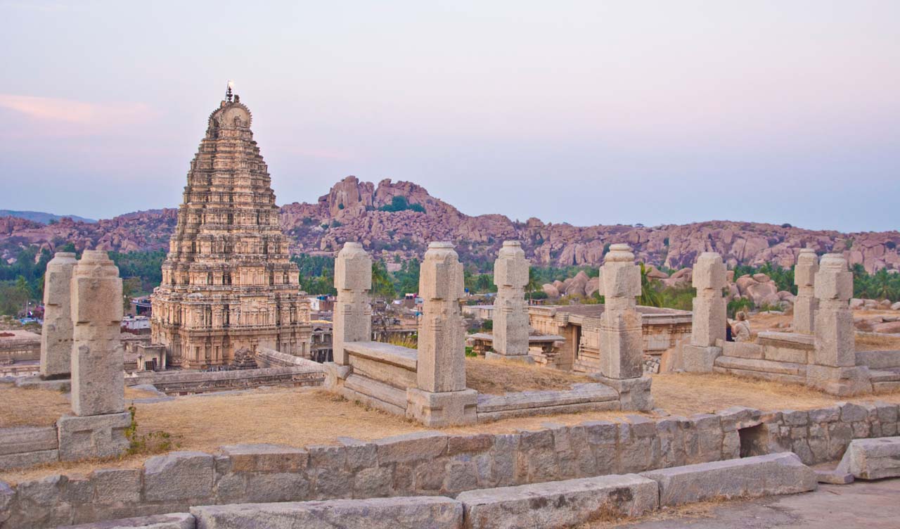 ** The main attractions are Virupaksha temple and surrounding areas. Vithala temple complex and areas around it.