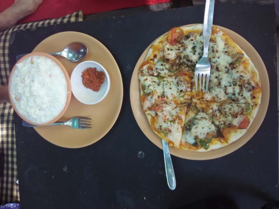 We returned to the market area after sightseeing for lunch. In Hampi, I noticed that it easy to get cuisine from any part of the world since the number of foreign tourists visiting here is more than Indians. Indian food is also available on Hippie Island. I ordered a vegetarian pizza and loved the preparation. It was a wood-fired pizza and base as well toppings were just perfect. After relaxing for some time, we looked for a room in a guesthouse and decided to stay there for one night.