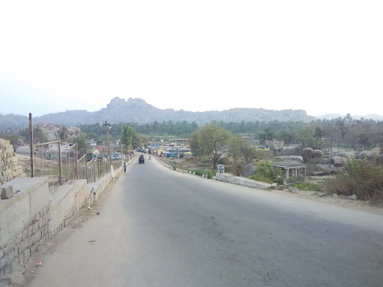 Our train arrived on time at the Hospet railway station. From the railway station, we took auto-rickshaw for Hampi, which is approx 12 km. We paid autorickshaw 200 INR after a little negotiation and it was half an hour’s drive. Before we entered Hampi village, we saw several monuments on both sides of the road.