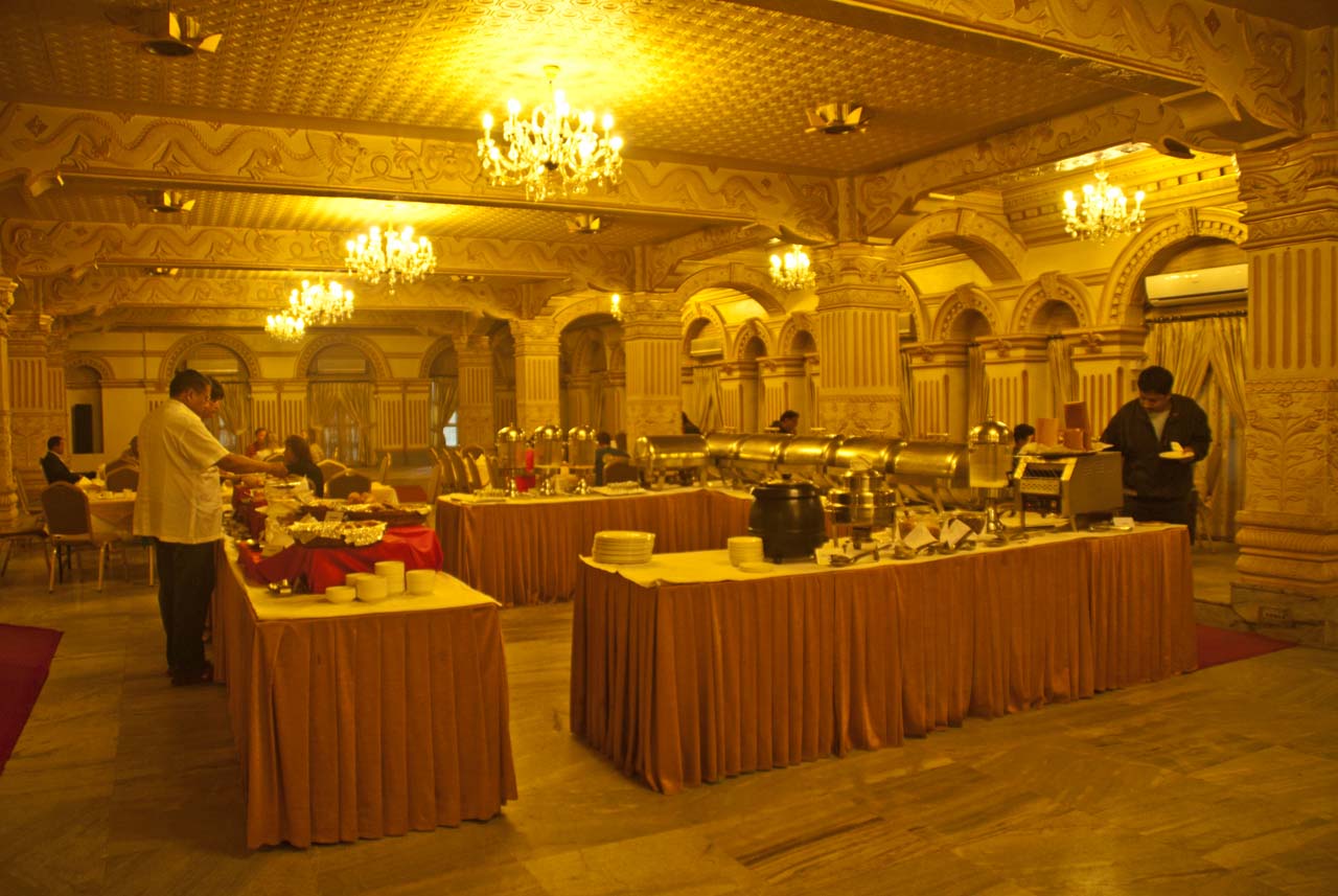 The unique interior decor of the palace was preserved making the restaurant, lobby, and rooms. There were carved wooden panels on walls and at other places in corridors, which added to the decor of the hotel. The lobby area was fancy with enough chandeliers to give it royal look.