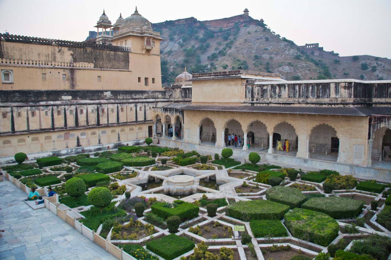 I walked around in palace and saw all these places in different courtyards. We returned to the first courtyard and from here, we saw the royal Garden Kesar Kayari at the bottom of the palace near Maota Lake. It is a well-manicured garden and looked beautiful from top of the fort.