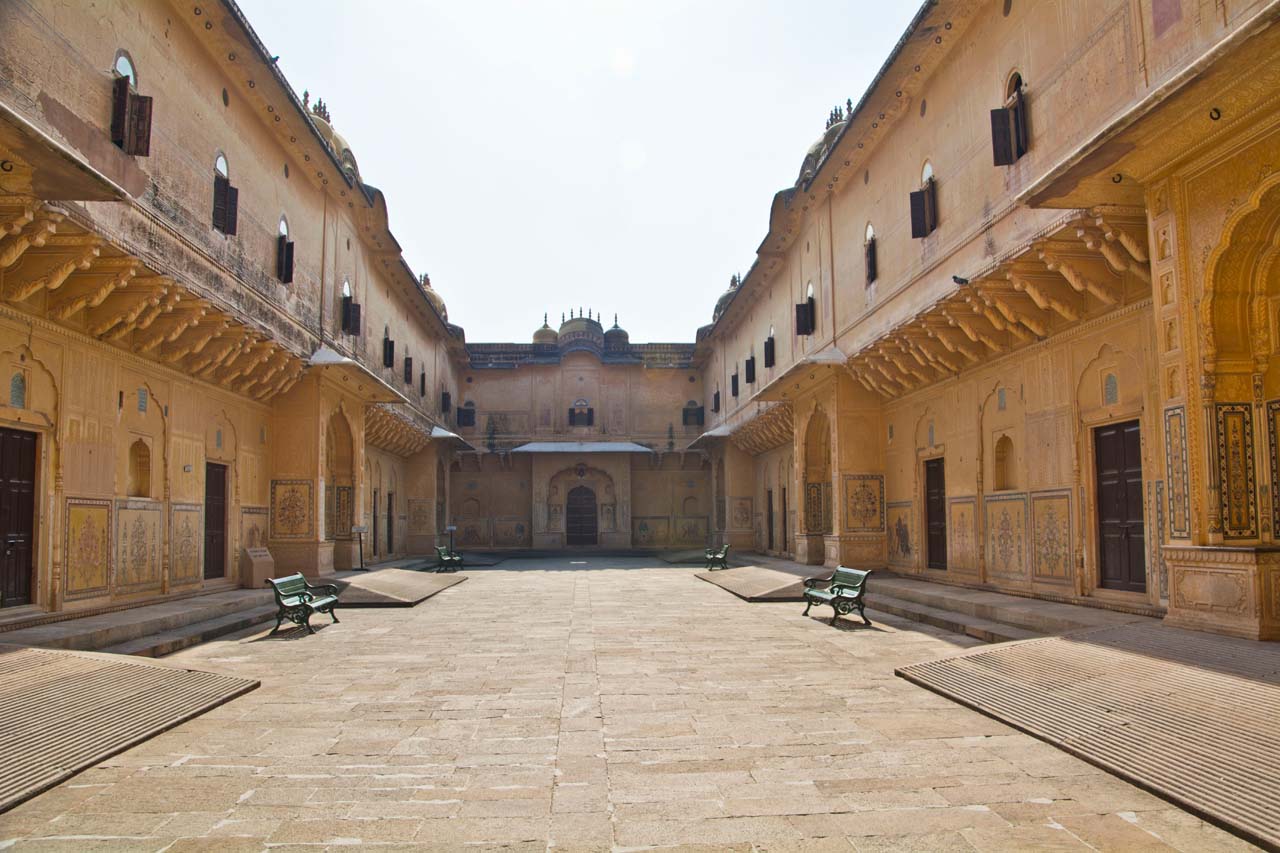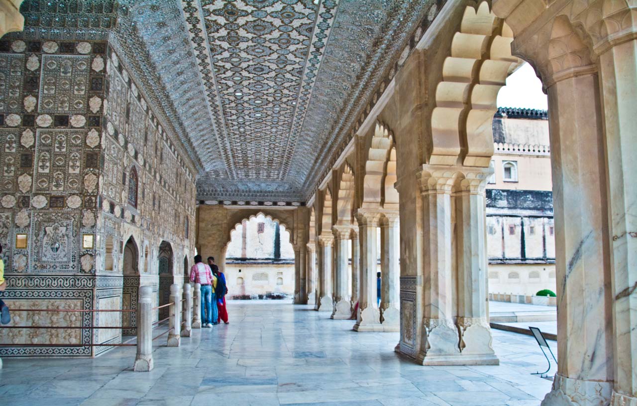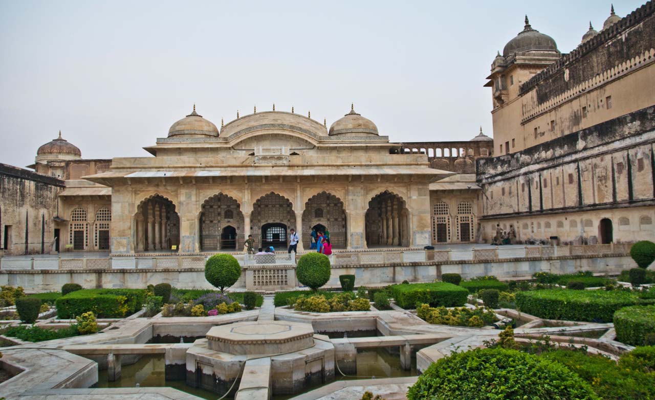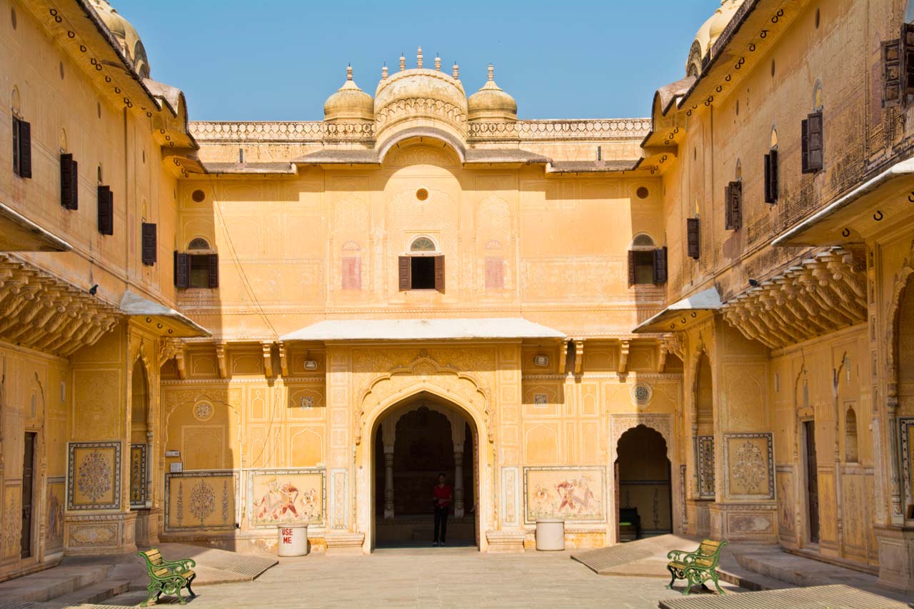 The third courtyard is entered through Ganesh Pol Gate. In this courtyard king and his family lived with their attendants. The main attraction of this part is Sheesh Mehal, central garden, and Sukh Mahal. Sheesh Mehal or Mirror Palace is the most beautiful structure in the palace, it’s walls and the ceilings are carved with beautiful flowers and other paintings made with glass.