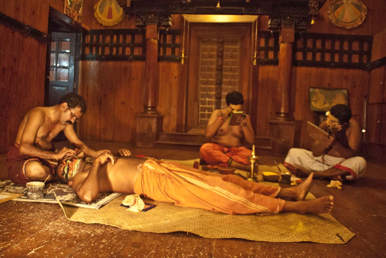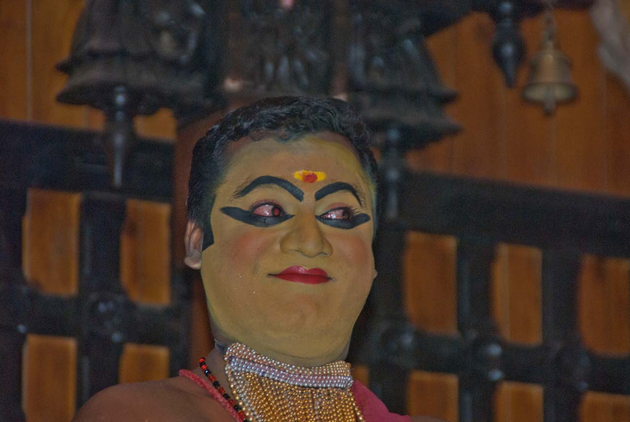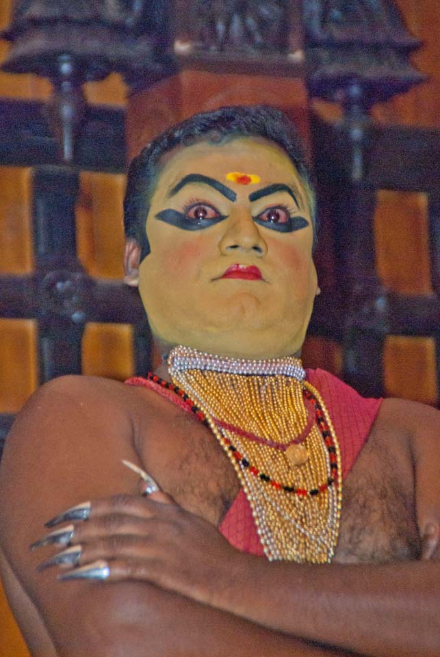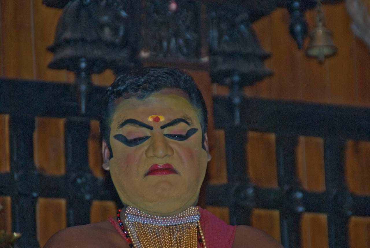 In Kathakali dance form story is told mainly with eye movements, hand gestures, and foot movements. They had given us a paper with the story for the day. One artist explained all mudra’s with meanings before the performance, the main reason is to make us understand when they perform.