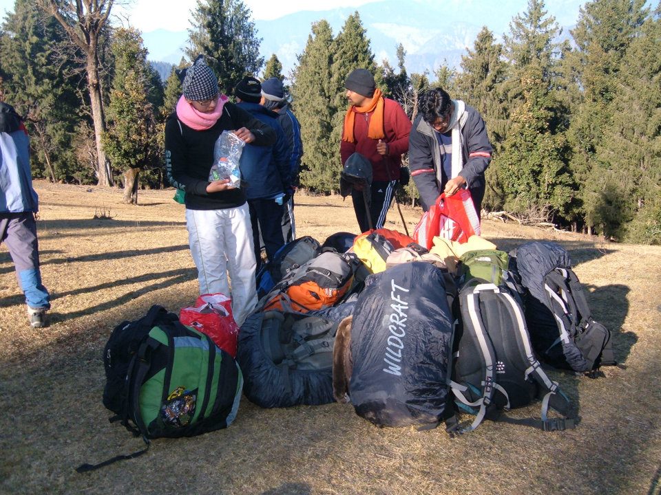 After breakfast, we assembled outside and got instructions for Kedarkantha trek. We were introduced to the people who will help us during our next 4 days. We started at 9.00 AM.