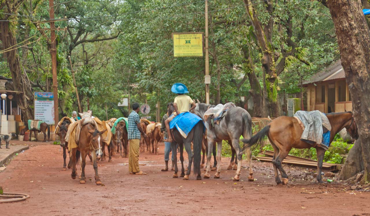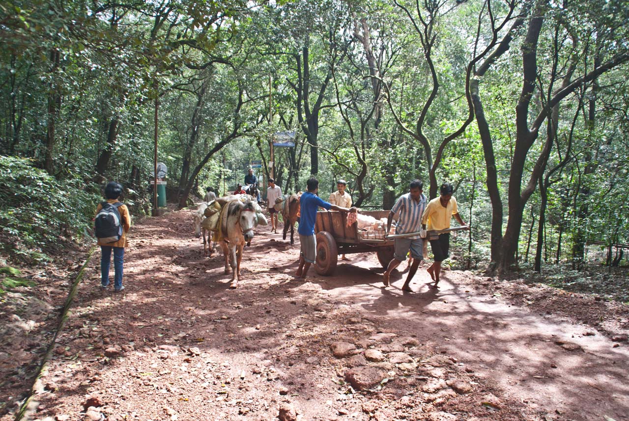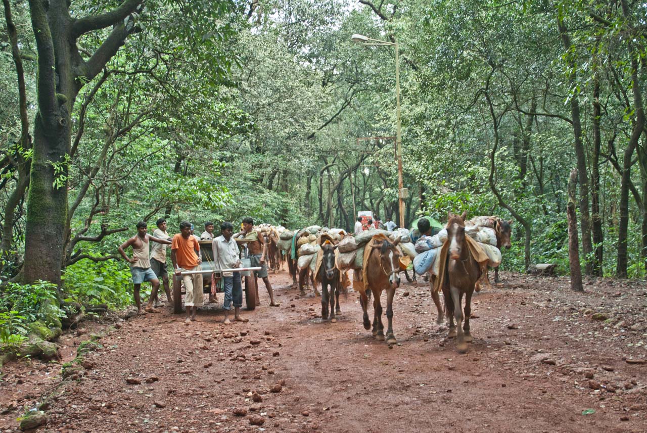Finally, we left from the Matheran around afternoon. We walked on the mud trek. While we were returning, we saw horses carrying loads of eatable and other items of daily use. Construction workers were repairing and leveling the mud trek with rollers.