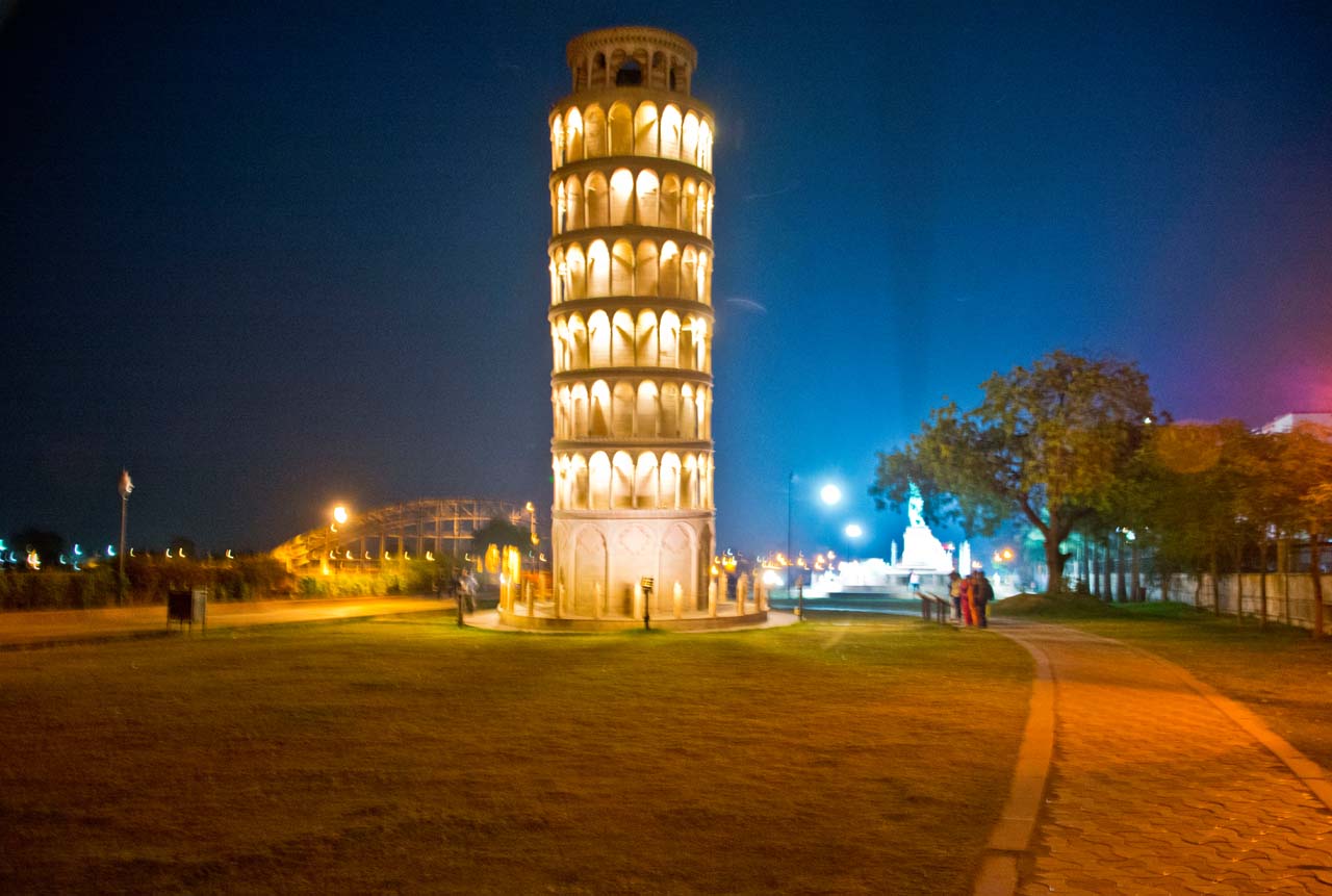 We got the first glimpse of Seven wonders park when we entered the Kota city. It was around 8.30 PM and we were going to our hotel from the Kota railway station. The sight of illuminated monuments from the road was very captivating and we decided that we will spend our evening here next day.