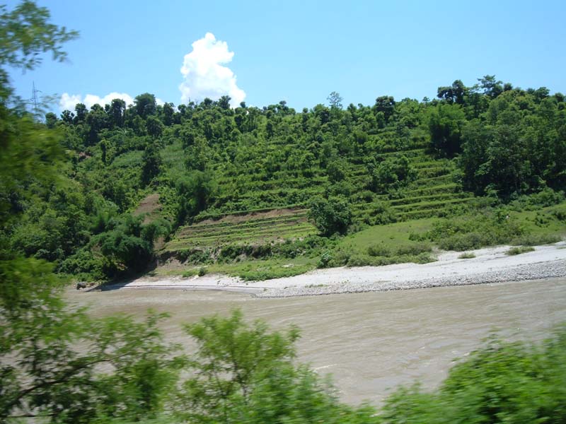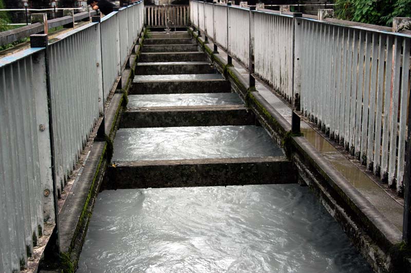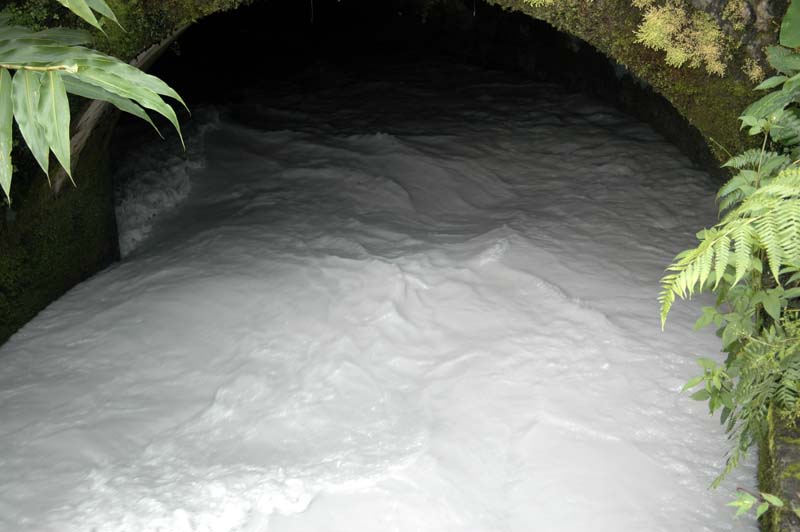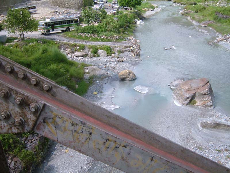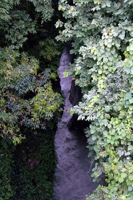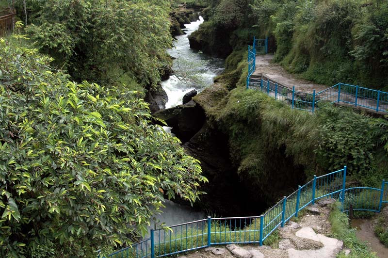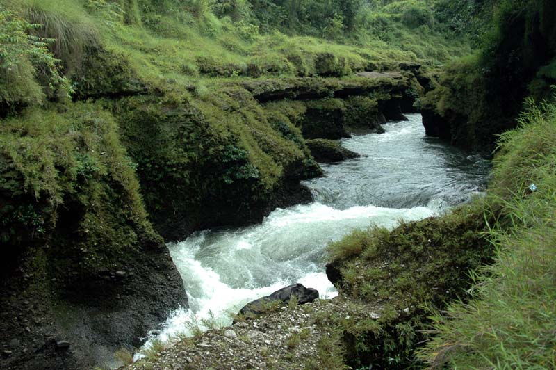 Most of the river has carved a deep, narrow chasm through the middle of town, gushing and turning the water milky white in the process. Most of the river is running underground in Pokhara.
