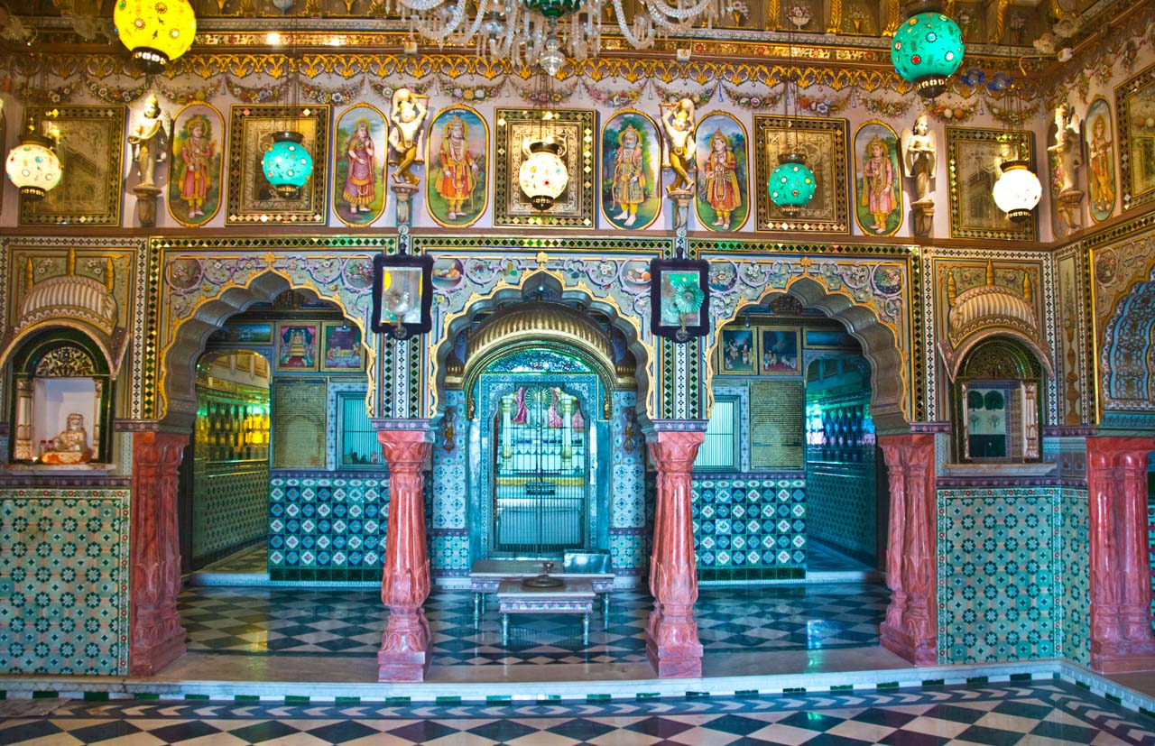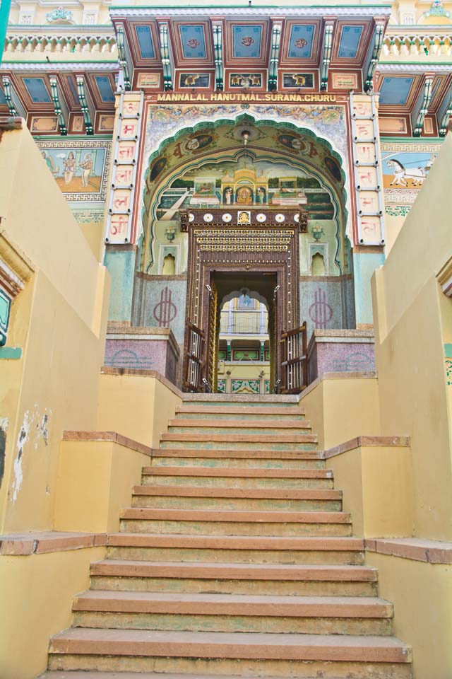 The interior of the temple is decorated with glass and paintings, this place was the highlight of my brief Churu visit.