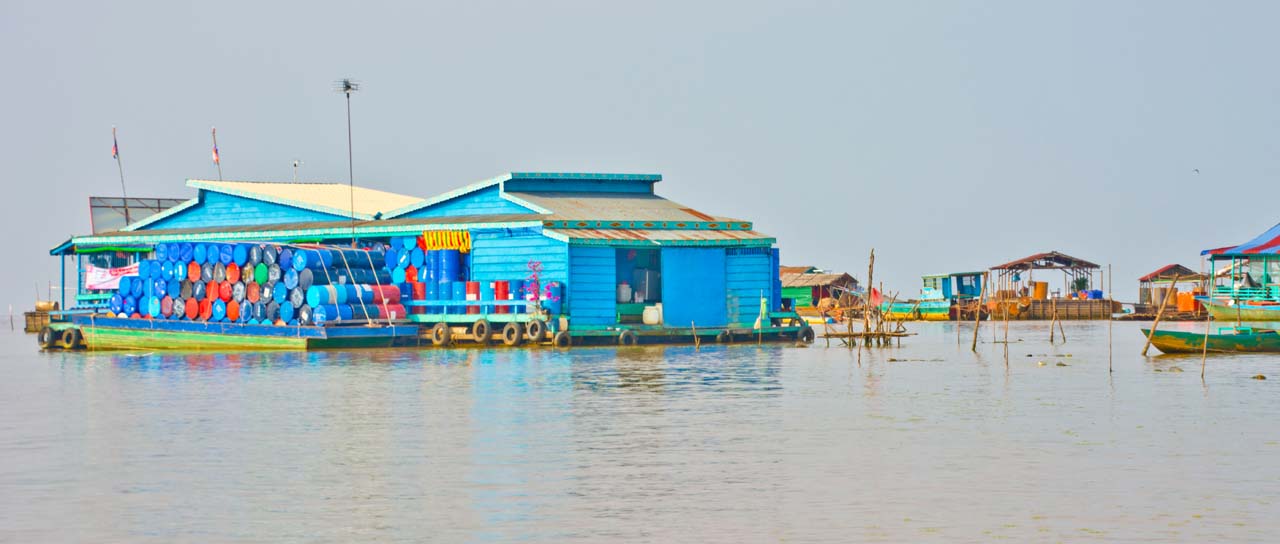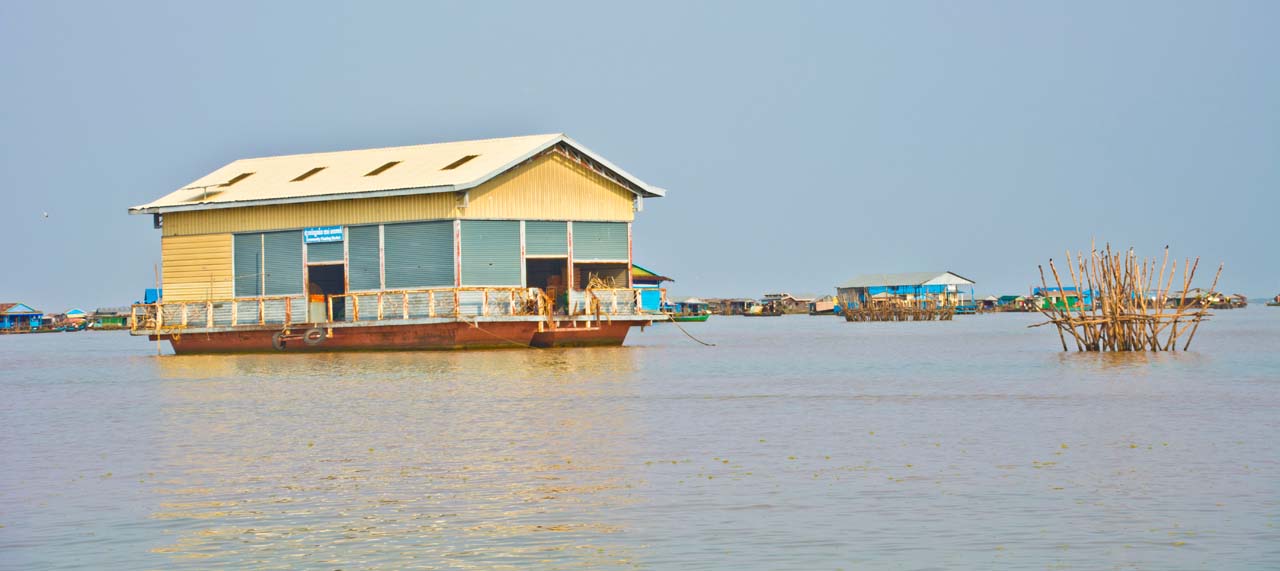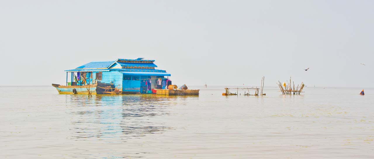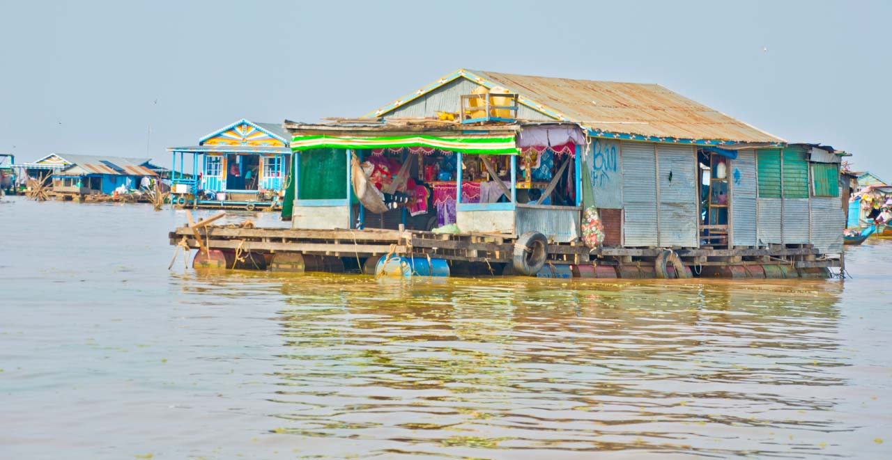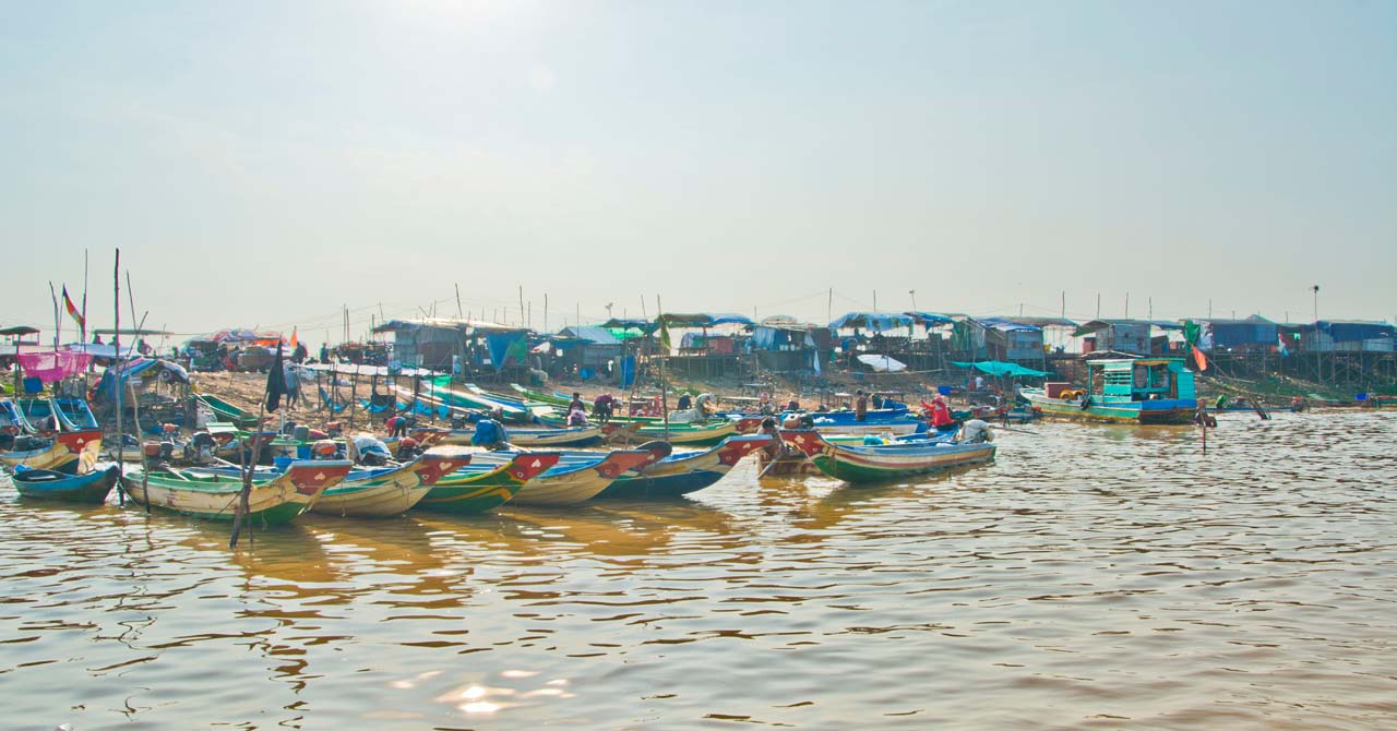 The Tonal Sap Lake is a unique water body which dramatically changes the size throughout the year. In the wet season from June to October, the lake swells with water from the Mekong River. In the dry season, from November to May Lake shrinks in size.