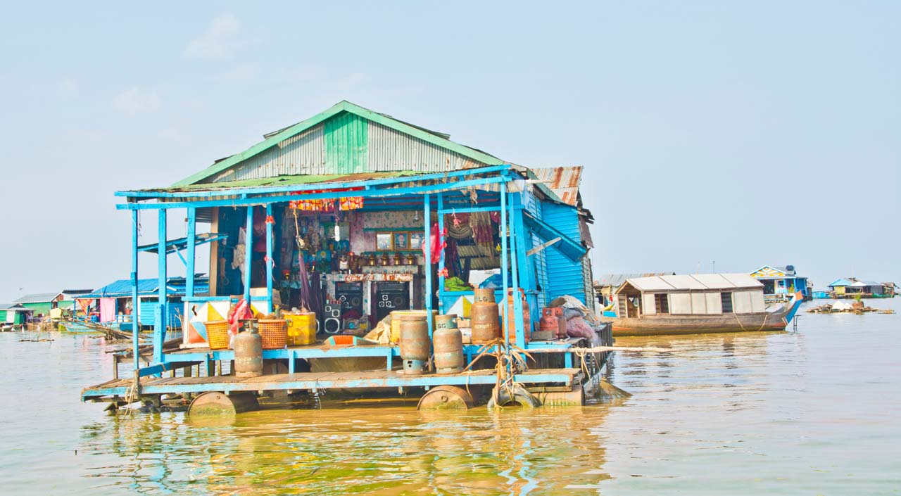 The Siem Reap’s floating villages are scattered in Tonal Sap Lake, which is the largest freshwater lake in South East Asia. These villages are not houses on stilts along the lakeshore or close to the water on the solid ground.
