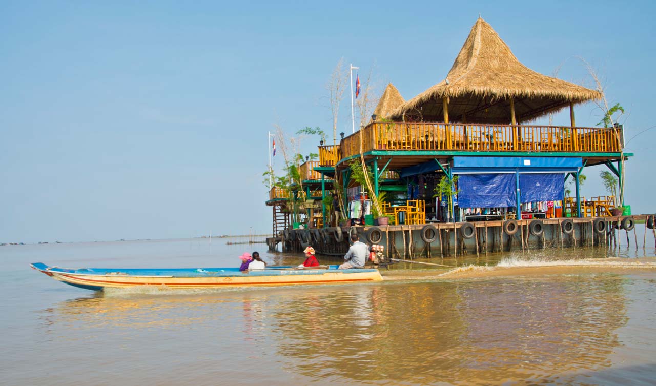 The Lake also works as a natural floodwater reservoir for the Mekong water system by regulating the water downstream from Phnom Penh during the wet season. Tonle Sap Lake’s size varies from 16,000 SQ km in the wet season to 3000 km during the dry season.