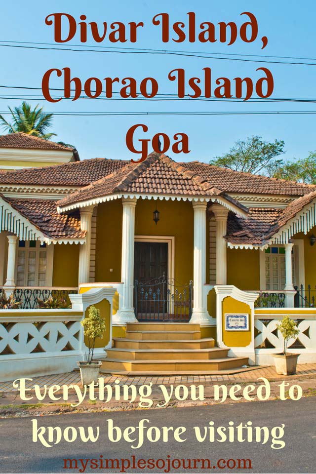 There are few old Portuguese houses left on Divar island. We saw some beautiful villas while exploring the island. We saw many brightly painted houses in the countryside and the main square of the area.