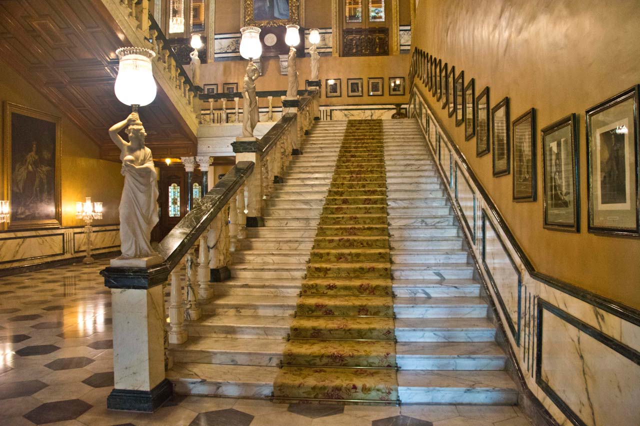 The library’s roof is made of carved walnut wood, which is a replica of the one library at Windsor Castle. The ceiling of state reception room is decorated with frescoes and gilded reliefs. Other than this there was a gym, swimming pool, and all other modern amenities. It’s on a hill so we could see the overview of the city at distance.