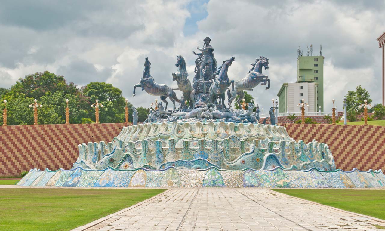 This statue is the world’s tallest monolithic Buddha statue, it is installed on 15 feet high concrete platform. In 1990 during the transfer of statue from shore to the platform in the lake, the statue tipped and fell in the lake. It took 2 years to pull the statue out from the lake and finally it was installed on the platform in December 1992.