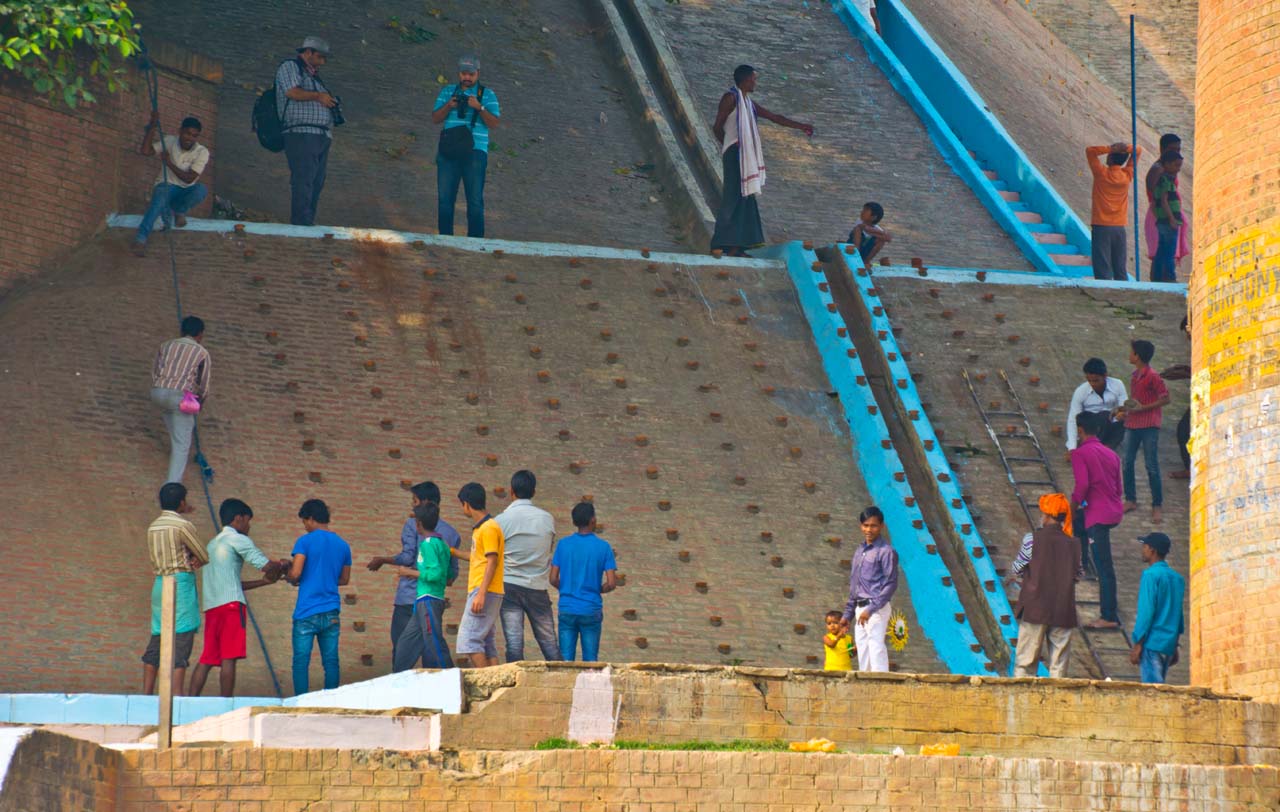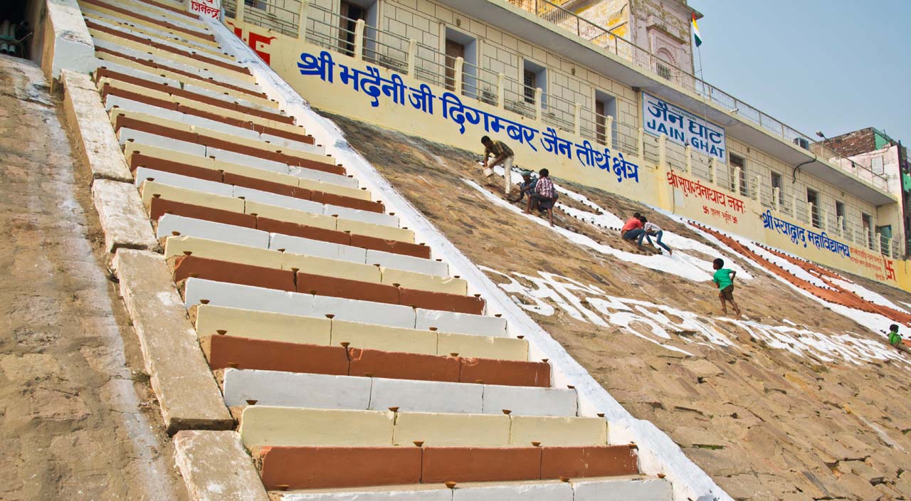 I noticed that on the stairs of Ghats of Ganga everyone was busy fixing or placing Diyas on ghat for the evening festival. There were young & old man and children running up down to help them. My boatman told me that the process of placing the lamps starts from early morning because it’s a very time-consuming task to place millions of lamps and then pour oil into them. It is all manual work and nothing can be done by machine.